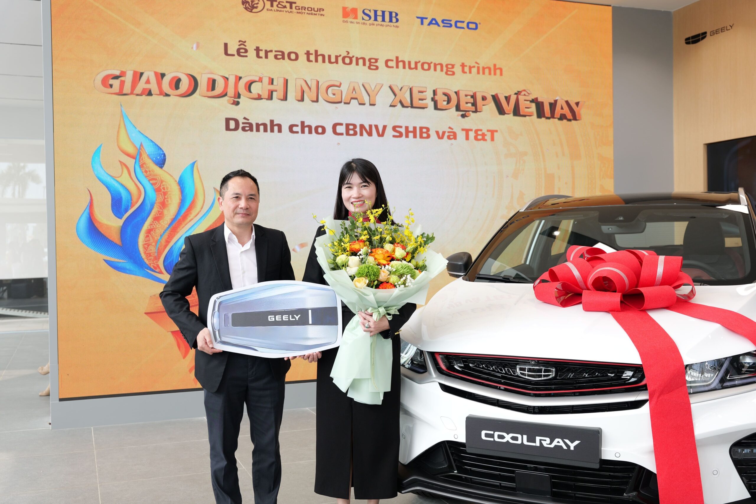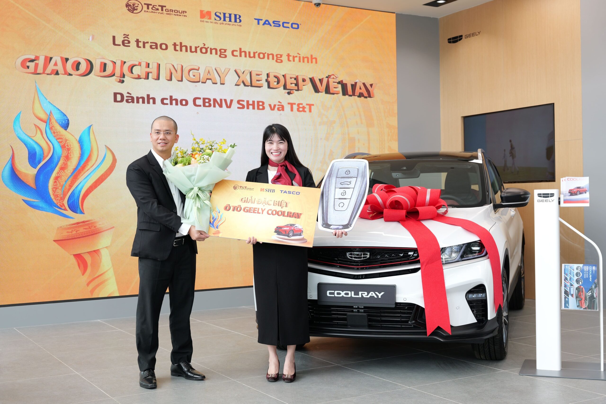 Lễ trao giải diễn ra trong không khí phấn khởi khi ba cán bộ nhân viên may mắn nhất chính thức được xướng tên và trở thành chủ nhân của Geely Coolray phiên bản Flagship – phần thưởng giá trị nhất của chương trình năm nay. Đây không chỉ là sự ghi nhận những đóng góp của cán bộ nhân viên mà còn đánh dấu sự hợp tác chiến lược giữa Geely Việt Nam và SHB & T&T Group, khẳng định cam kết mang đến những sản phẩm chất lượng, hiện đại và tiên tiến đến với thị trường Việt Nam.